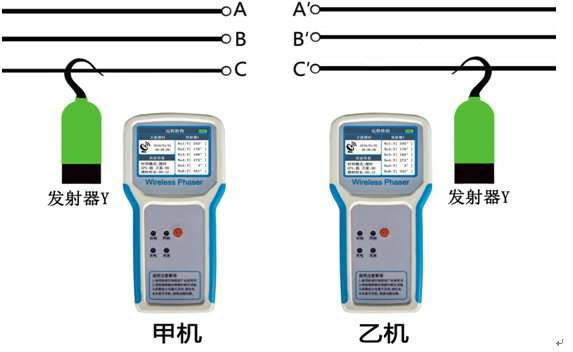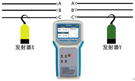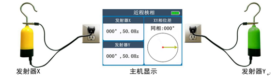 同時(shí)使用兩臺(tái)儀器可進(jìn)行遠(yuǎn)程核相,原理圖如下: